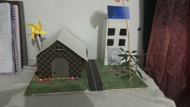 تم إنجاز المجسّم باستعمال مواد بسيطة ومتنوعة، من بينها: